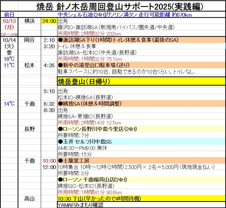 息子が焼岳 針ノ木岳周回登山したいと言うので2025年10月13日(月)〜15日(水)車で送迎しました。 平日/深夜/早朝移動なので渋滞なく移動できました。(^_^)V 2000〜3000m級の高山は山小屋が閉じているので日帰りで2つの登山をしました。 ただ天候が急変して直前に行程を大幅に変えました。 予約した陶器制作体験を変えられないので往復4時間も移動しました。 いずれの山も下山が予定よりとても早く対応に苦労しました。(汗) 宿で息子が山岳ガイドかと言われました。 老夫婦をサポートするガイドと思われたのでしょうか(笑) 自分達は土龍窯工房で陶器制作体験をしました。(^o^)