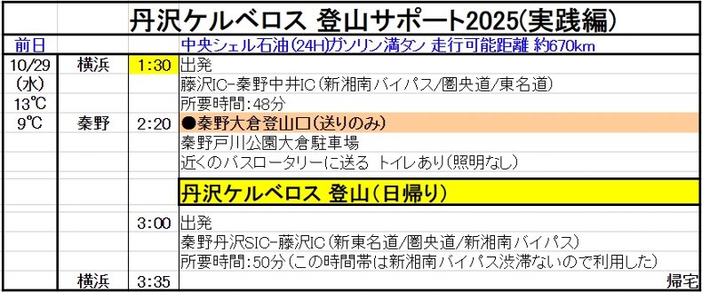 息子が丹沢ケルベロス登山したいと言うので 2025年10月29日(水)車で送りました。帰りは公共交通機関利用です。